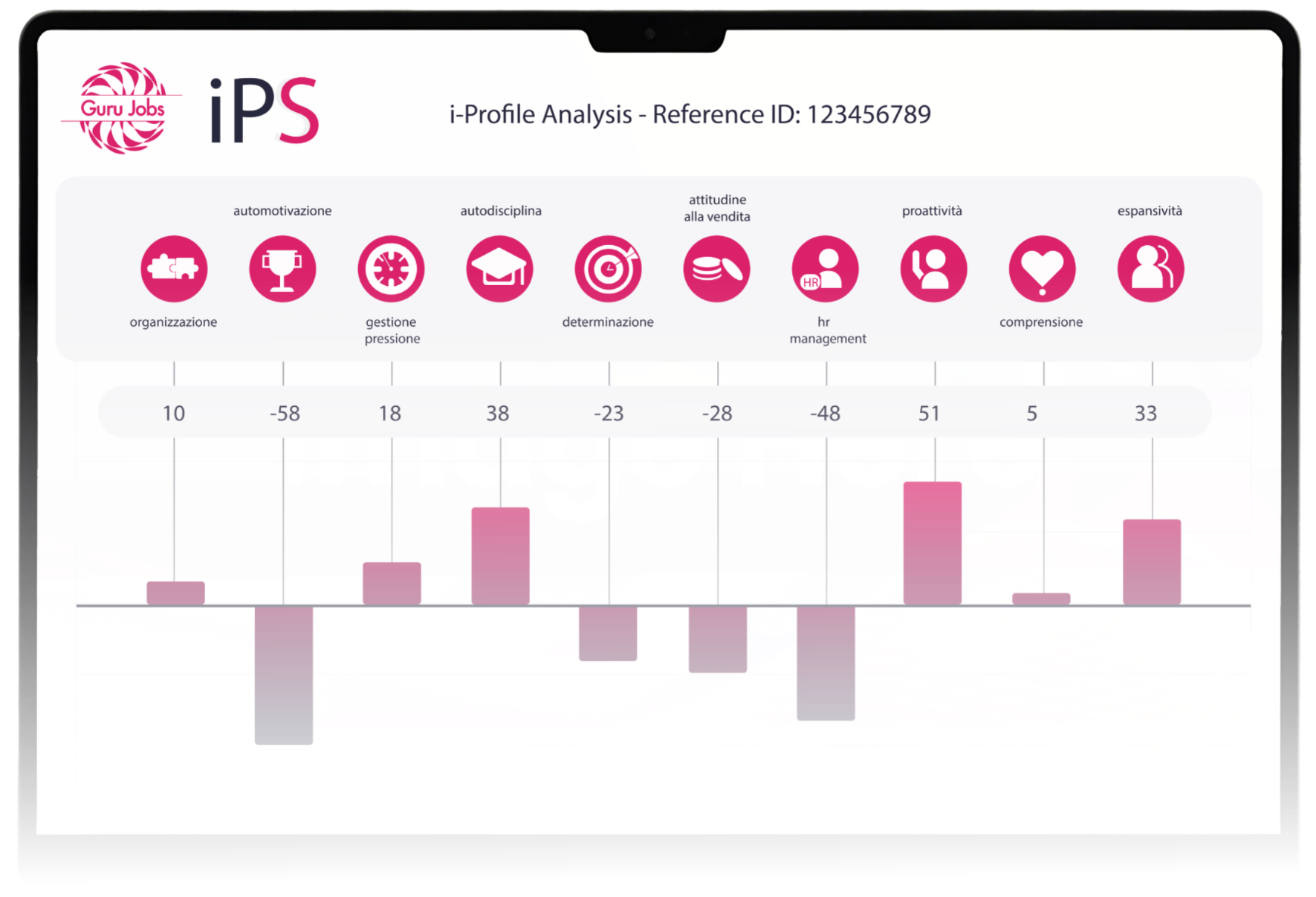 Subito dopo il test, i-Profile genera un report chiaro sulle 10 competenze del candidato.